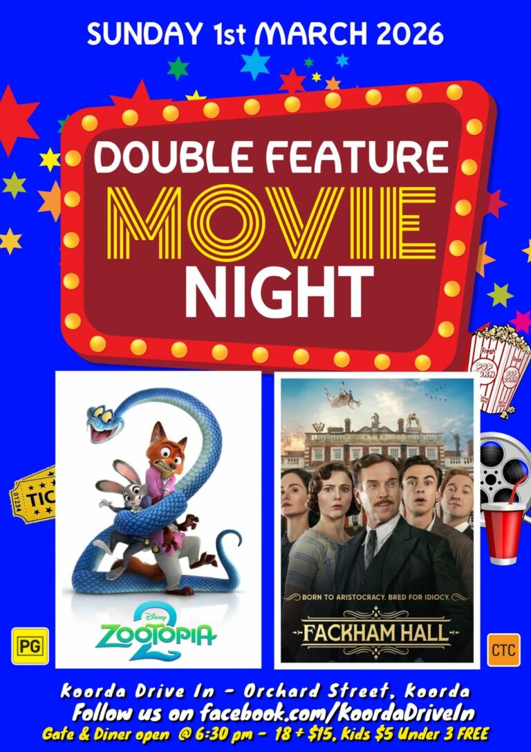 A fresh year kicks off at the Koorda Drive-In! Join us for the first double feature of 2026 on Sunday 1st of March, starting with