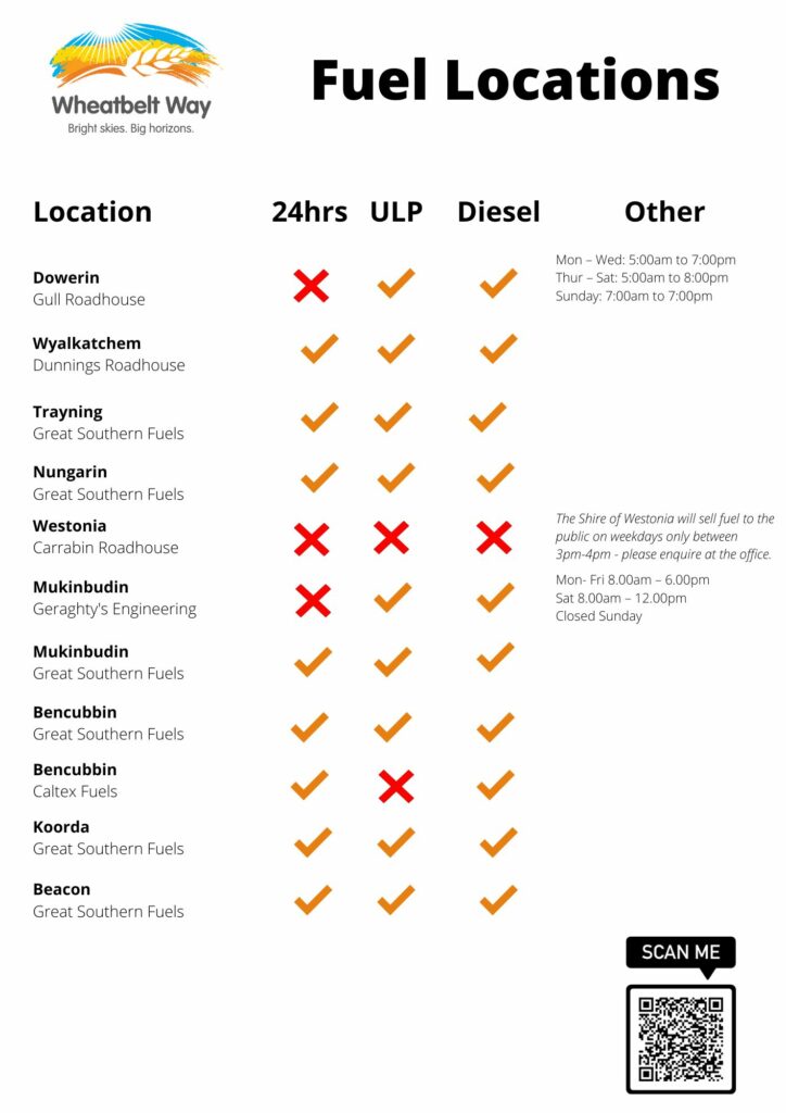 The Wheatbelt Way App has a full listing with all the details businesses that supply fuel and services (from local butchers shop to supermarkets, electricians to welding services and everything in between)! This is information is displayed by town. We recommend that you download the App so that you can have this information easily at your disposal when traveling in the Wheatbelt Way.